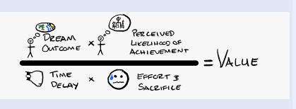{Value} = {Dream Outcome} \times \{Perceived Likelihood of Achievement}}\{Time Delay} \times {Effort & Sacrifice}}